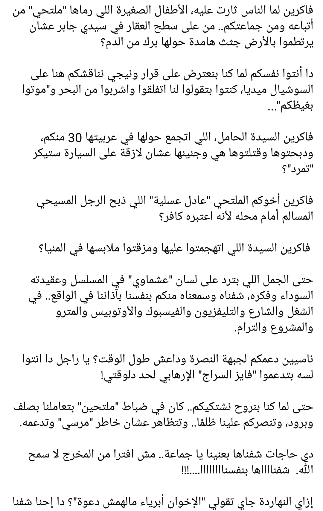 لسه فى أمل On Twitter الاخوان بيستعمونا على حتجات عيشنها من ٦ ٧ سنين وبيقولوا ان اللى بيحصل فى المسلسل افترا عليهم احنا لسه مانسناش ولا هننسى والحمد لله المسلسل ده اتعمل عشان ولادنا