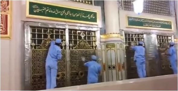 لحظة تنظيف قبر الرسول صل الله عليه وسلم من الخارج Youtube