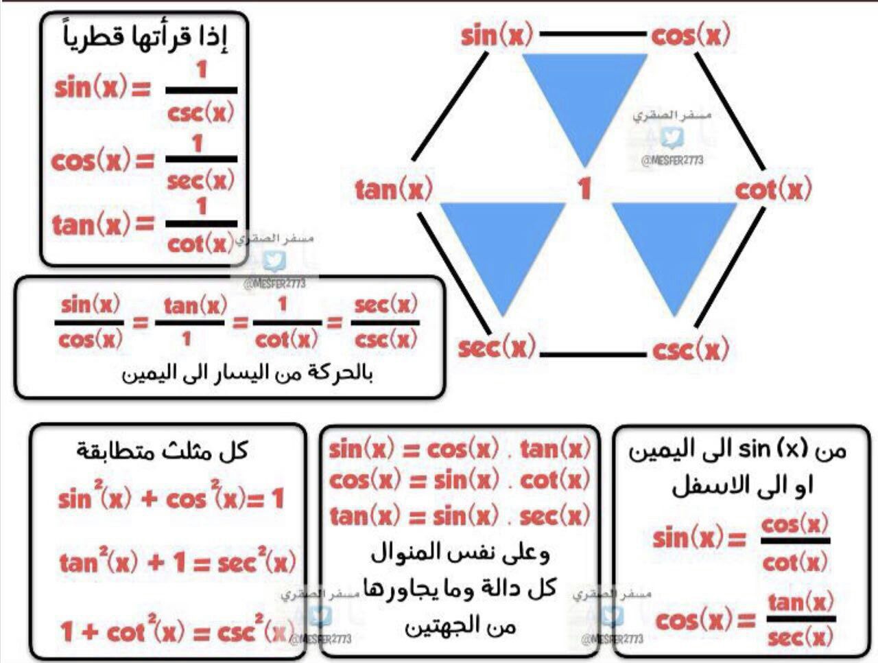 جميع قوانين حساب المثلثات رياضيات تثليث