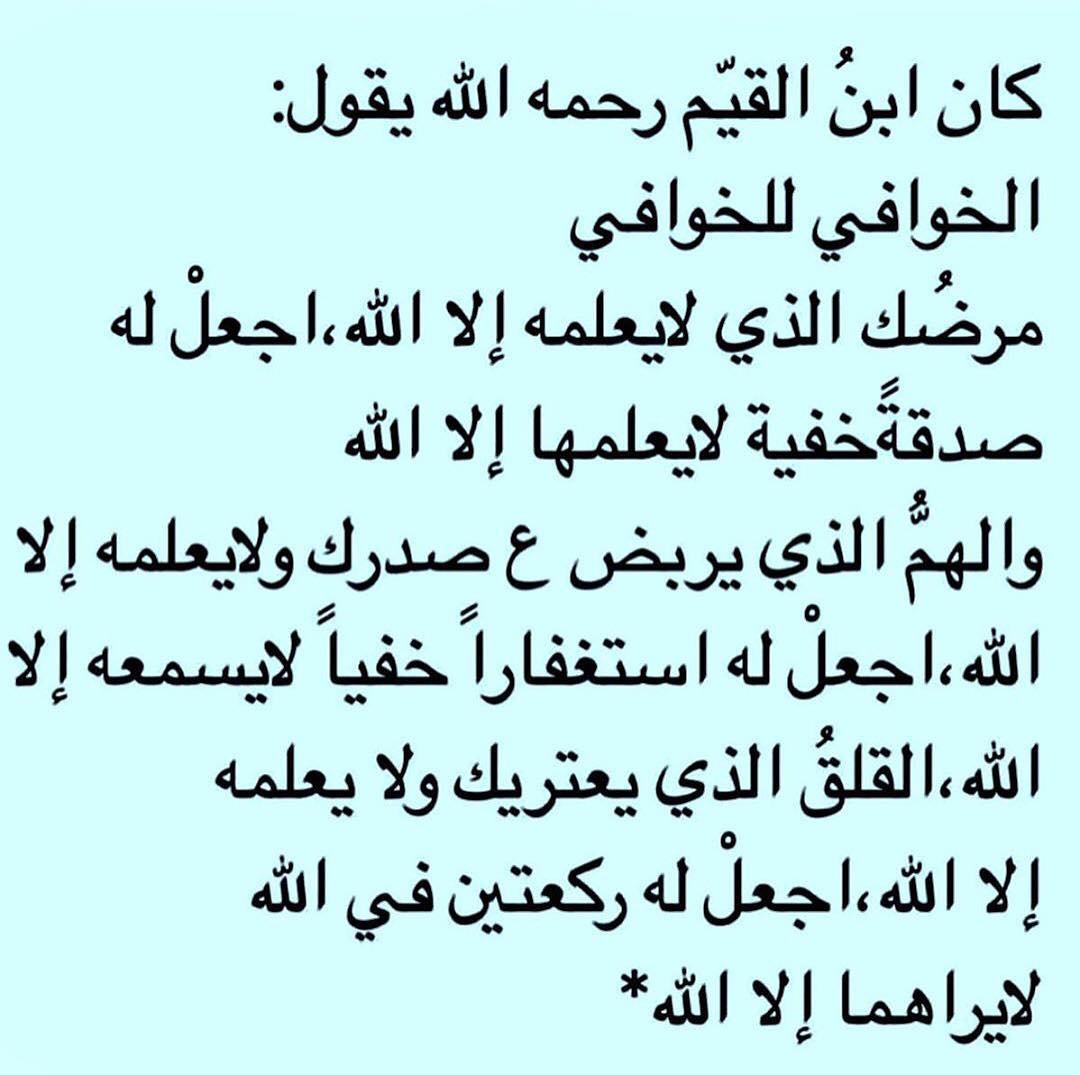 سليمان الصقعبي On Twitter يقول ابن القيم الخوافي للخوافي مرضك الذي لا يعلمه إلا الله اجعل له صدقة خفية لا يعلمها إلا الله والضيق الذي في صدرك ولا يعلمه إلا الله اجعل