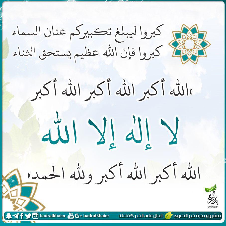 نبع الحياة A Twitter كبروا ليبلغ تكبيركم عنان السماء كبروا فإن الله عظيم يستحق الثناء أحيو سنة التكبير الله اكبر الله اكبر لا إله إلا الله الله اكبر الله اكبر ولله الحمد