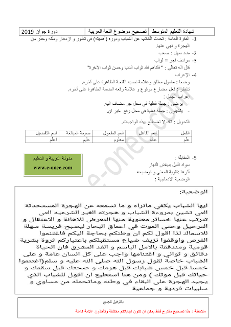 تصحيح موضوع اللغة العربية شهادة التعليم المتوسط 2019 موقع الدراسة الجزائري