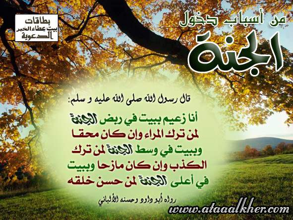 ما هو أجر حسن الخلق وترك المراء والكذب موقع البطاقة الدعوي