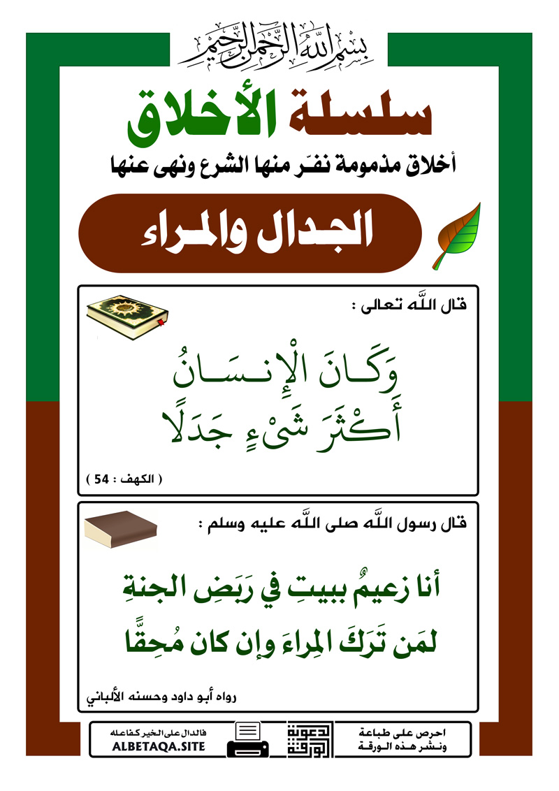 أنا زعيم ببيت في ربض الجنة لمن ترك المراء وإن كان محقا موقع البطاقة الدعوي
