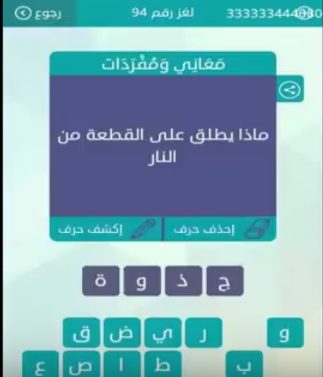 جواب سؤال ماذا يطلق على القطعة من النار لغز رقم 94 من لعبة وصلة للمجموعة الحادى عشر صقور الإبدآع