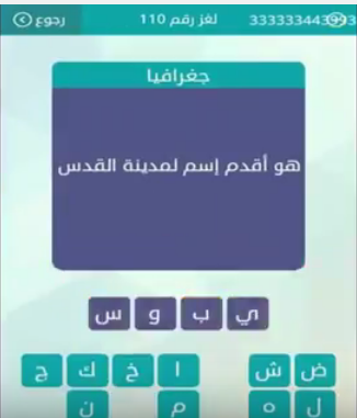 اجابة لغز هو اقدم اسم لمدينة القدس لغز رقم 110 من لعبة وصلة فى المجموعة الثالثة عشرة صقور الإبدآع