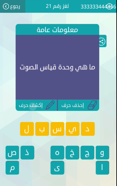 حل اجابة ما هى وحدة قياس الصوت لغز رقم 20 من لعبة وصلة للمجموعة الثالثة صقور الإبدآع